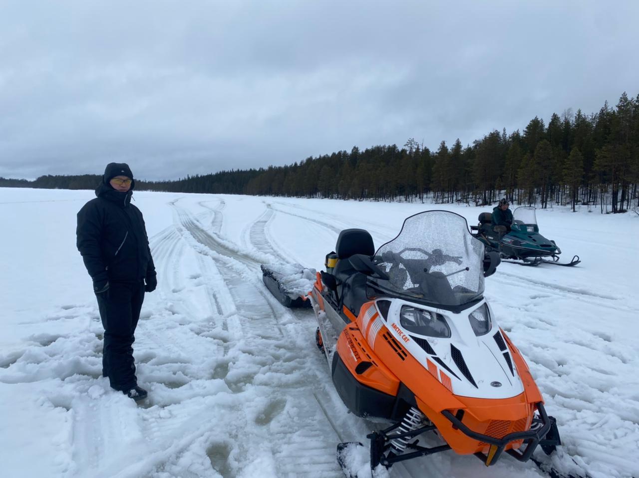 Выезд на рыбалку каждый день на снегоходах с санями по горизонтам озера на расстоянии не более 10 км, чтобы не тратить время зря, и поездка была комфортной.